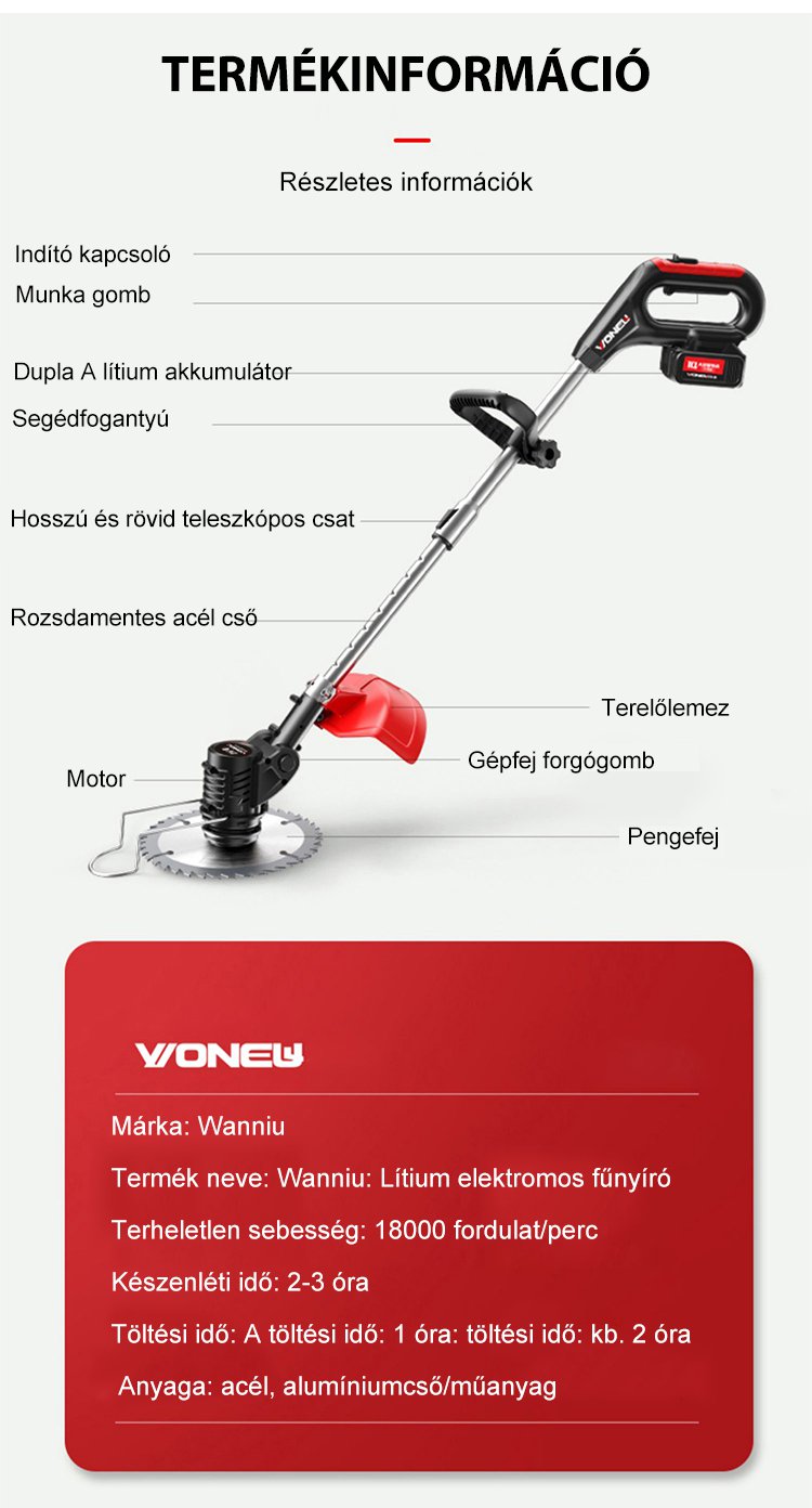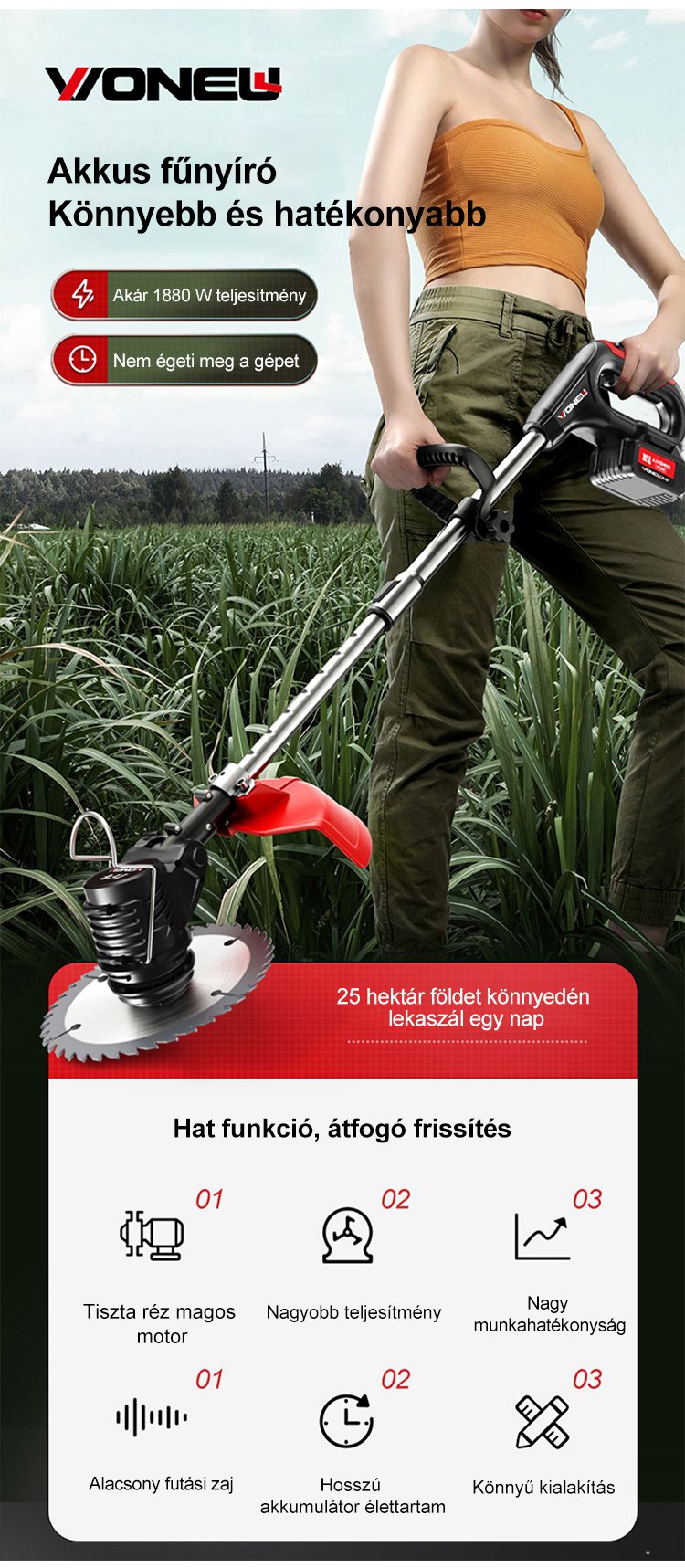 Könnyű lítium akkumulátoros kerti fűnyíró