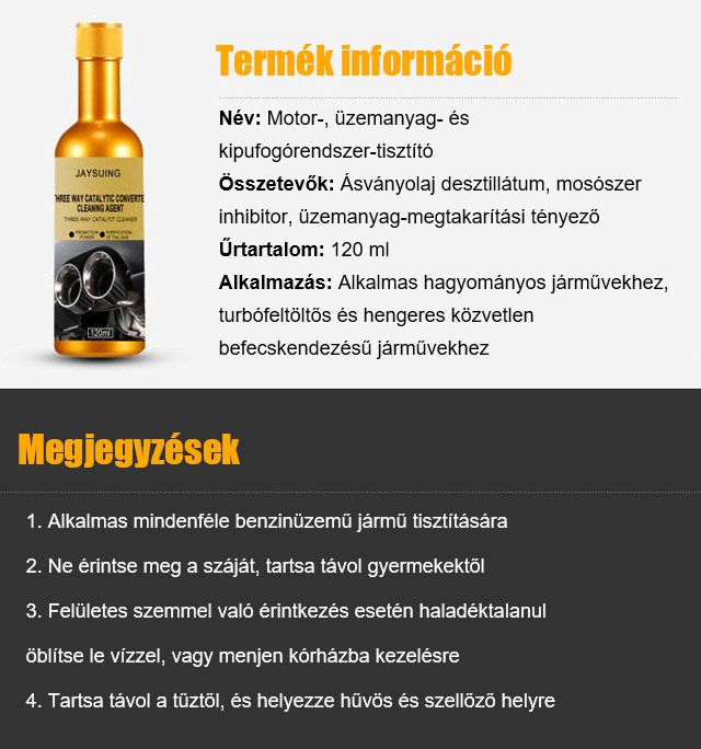 Motor, üzemanyag és kipufogó rendszer tisztítószere