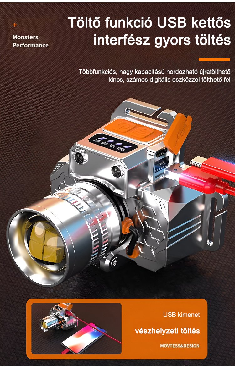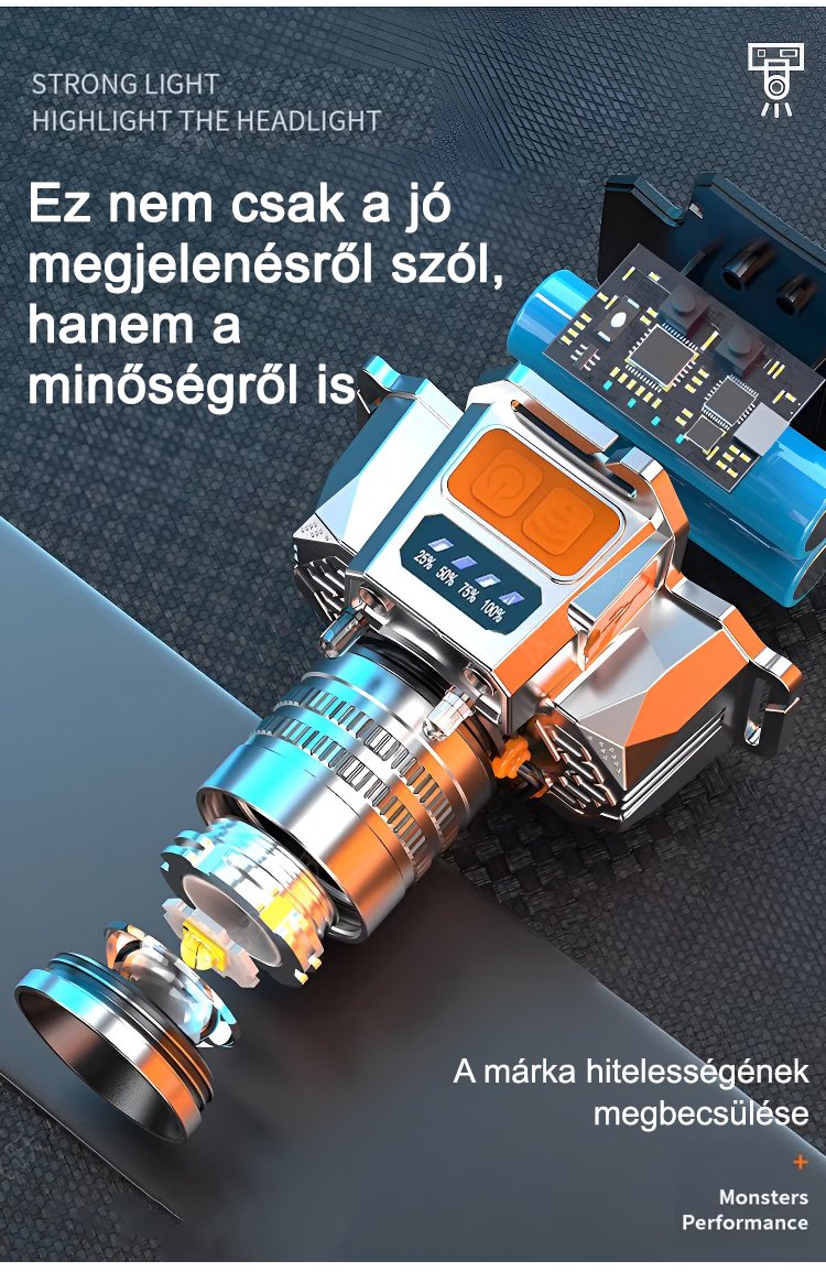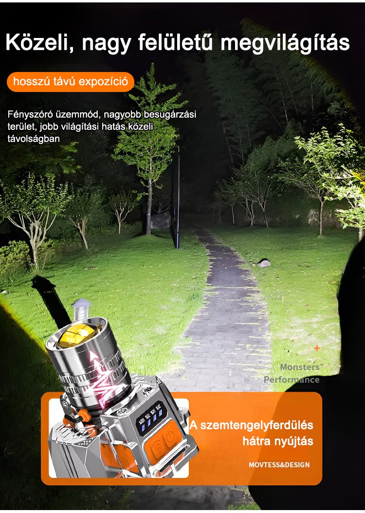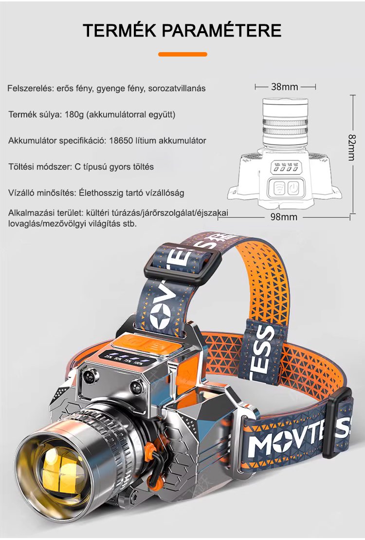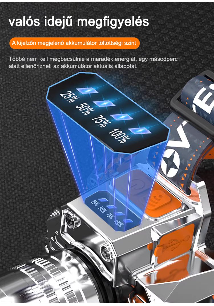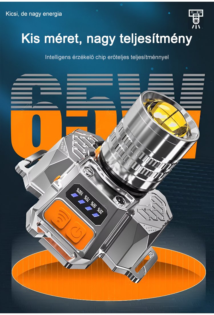 Fejre szerelhető érzékelős zoom zseblámpa
